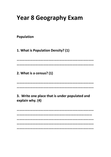 Year 8 Geography Exam Teaching Resources